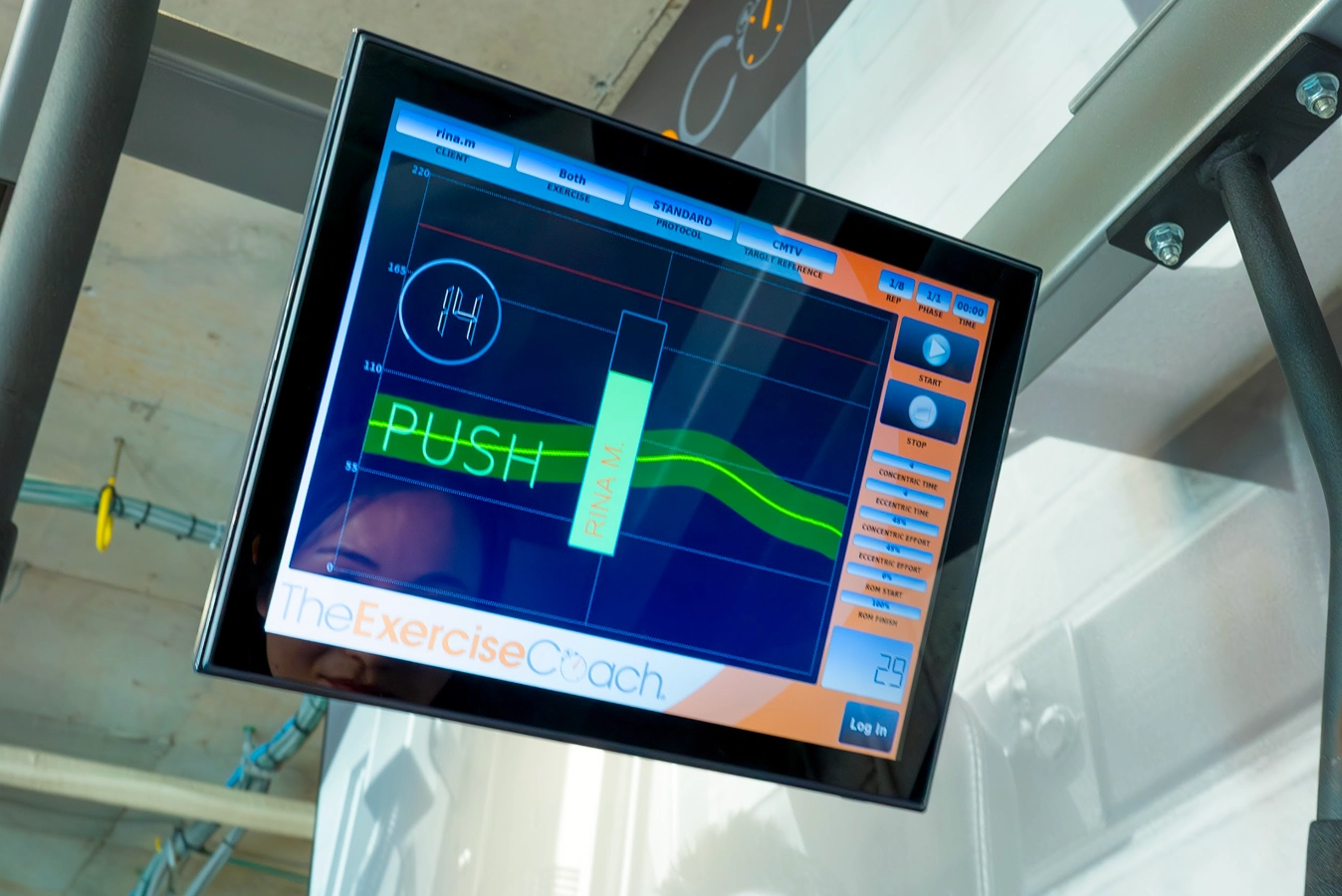実際にAIマシンであなたに最適な負荷と可動域(運動範囲)を計測していきます。力の入れ具合が画面上に表示されます。