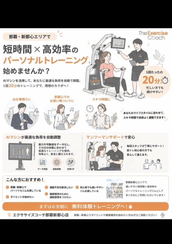 エクササイズコーチ那覇新都心店では、AIマシンを活用したパーソナルトレーニングを行っています🤖